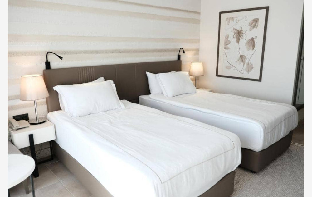 Sobe: hotel raspolaže sa ukupno 246 soba, raspoređenih u 2 zgrade u okviru kompleksa. Standard sobe sa pogledom na kopno ili more, su površine 25-30m2 i poseduju kupatilo (Tuš WC i fen za sušenje kose), mini-bar (voda i sokovi se menjaju na dnevnom nivou), klima, TV, sef, telefon, ketler, balkon, wifi. Maksimalno borave 3 odrasle osobe. Select superior sobe sa pogledom na more, se nalaze u anex zgradi i imaju površinu od 25-28m2. Isto su opremljene kao standard sobe. Maksimalno borave 2 odrasle osobe i dete do 2 godine. Family sobe sa pogledom na more su površine 35-40m2 i sastoje se od dve prostorije odvojene vratima. Isto su opremljene kao standard sobe. Maksimalno borave 4 odrasle osobe i dete do 2 godine. Select family sobe sa pogledom na more se nalaze u anex zgradi i površine su od 35-40m2. U pitanju su dve prostorije odvojene vratima. Isto su opremljene kao standard sobe. Maksimalno borave 4 odrasle osobe.