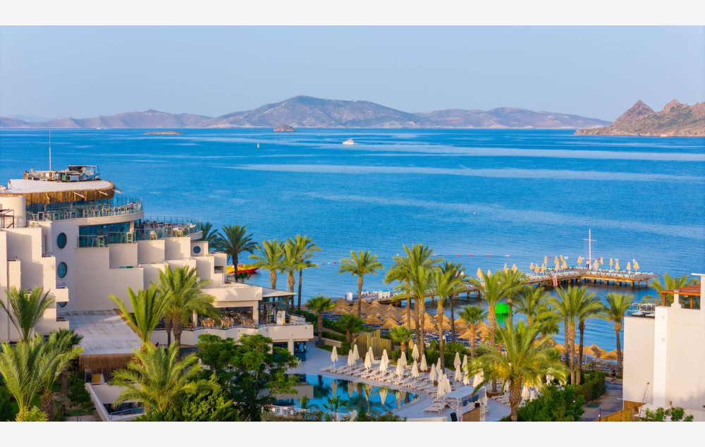Položaj: hotel se nalazi na oko 1km udaljenosti od Turgutreisa, 55 km od aerodroma u Bodrumu i 20 km od centra Bodruma. Hotel zauzima površinu od 30 000 m2.