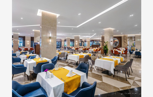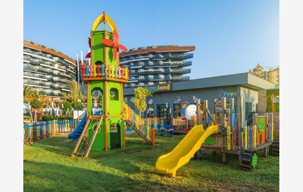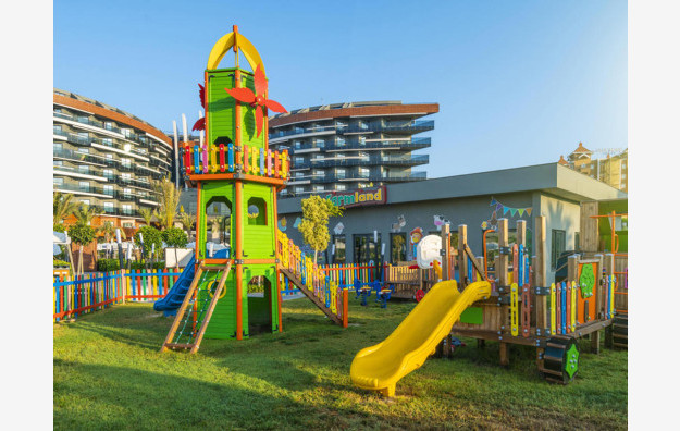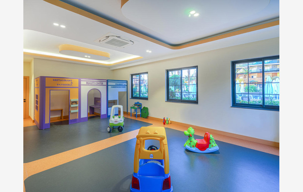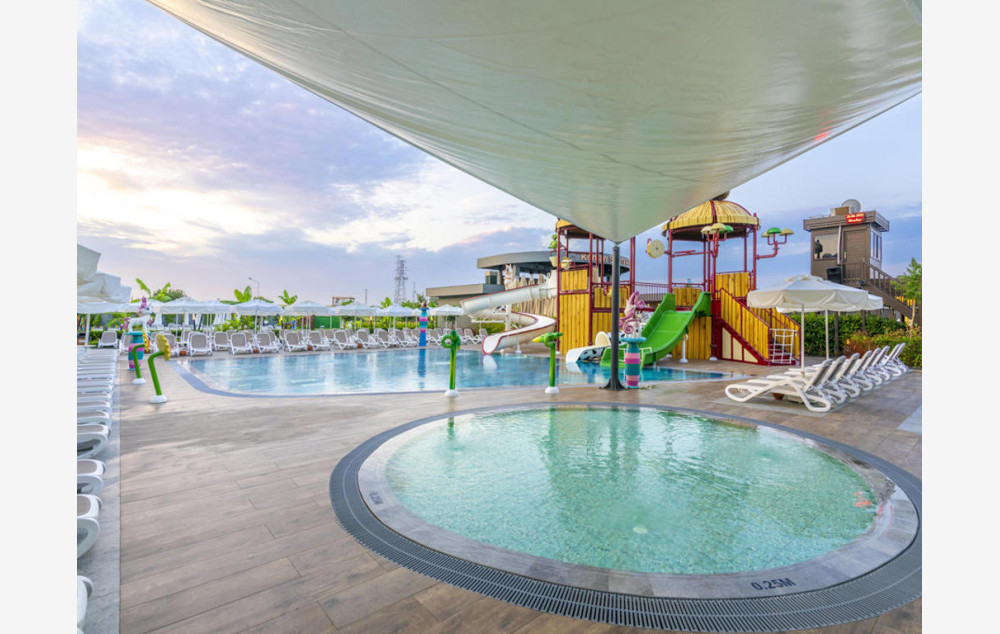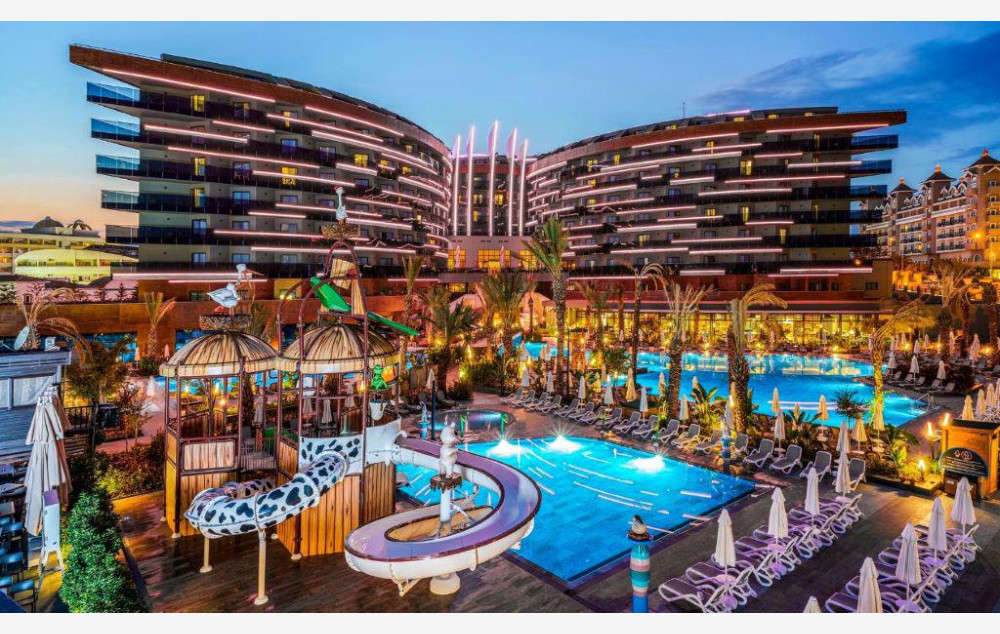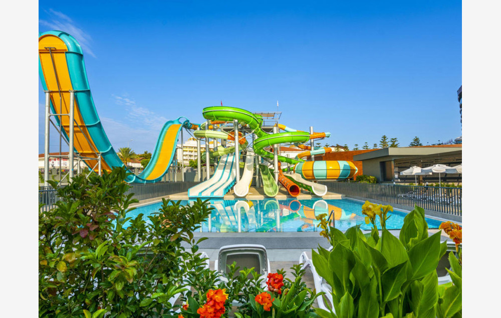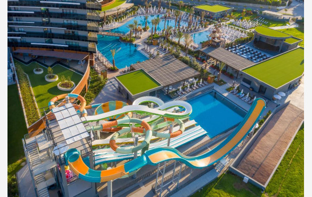 Hotelski sadržaj: Hotel poseduje recepciju, glavni restoran, 2 a la carte restorana, 5 bara, bazen za odrasle, bazen za decu, aqua park za odrasle sa 9 tobogana, dečiji aqua park sa 2 tobogana, dnevnu i večernju animaciju za decu i odrasle, mini klub ( za decu od 4-12 godina), mini disco, igralište za decu, teretanu, tursko kupatilo, saunu, masaže, vaterpolo, aqua gym, boćanje, pilates, pikado, stoni tenis, odbojku na plaži, wi fi.