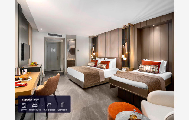 Superior soba – superior dvokrevetna soba, veće kvadrature od standardne sobe i uglavnom kvalitetnije opremljena, sa dva standardna ležaja ili francuski (široki) ležaj + pomočni ležaj