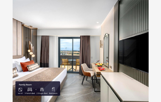 Položaj: Hotel se nalazi u mestu Kumkoj, na 5 km udaljenosti od centra Sidea i 60 km od aerodroma u Antaliji. Prostire se na površini od 25.000m2. Otvoren je 2021-e godine, poslednji put renoviran 2024. godine.