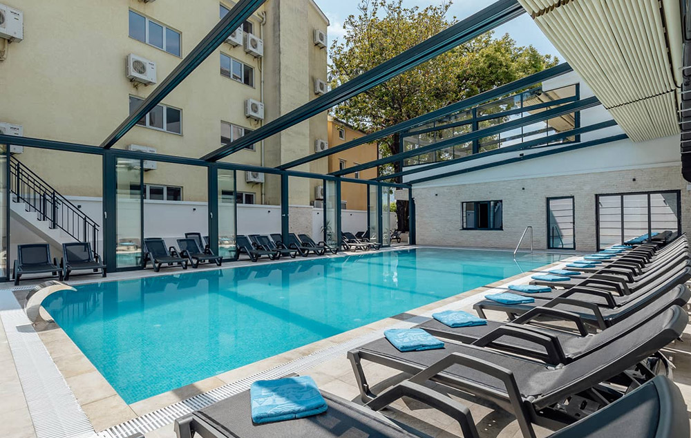 Smeštaj: Hotel TALIA (nekadašnji hotel Vojvodina) se sastoji od dva hotelska kompleksa - objekat A sa 4* i objekat B sa 3* koji su međusobno spojeni. Objekat A raspolaže sa 92 jedinice (od toga 52 jedinice u objektu A - superior sobe 4* / superior apartmani 4* i 40 jedinica u objektu B - standard sobe 4*). Objekat B, kategorisan sa 3*, raspolaže sa 72 jedinice - standard sobe 3* / standard apartmani 3*