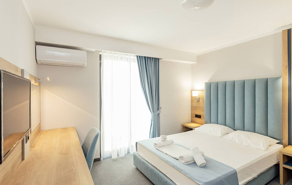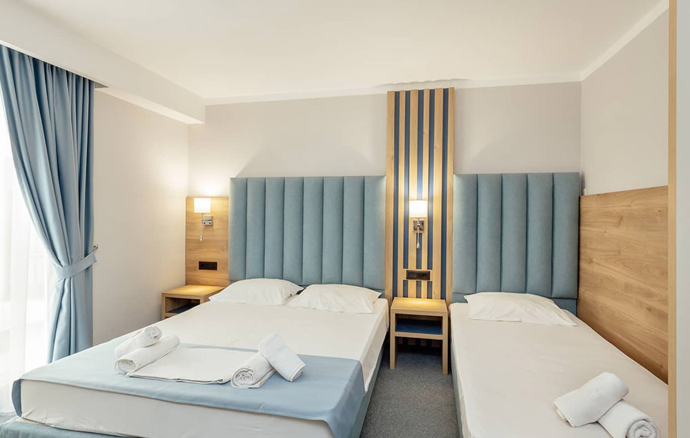 NAPOMENA: boravak na bazi minimum 9 noćenja (hotel Bečići) osim za hotele Lara Čanj , Adria Harmony u Čanju i Adria 2 u Šušnju gde ne postoji ograničenje u broju noćenja)., sa uslugom naznačenom u tabeli od vremena ulaska u hotelske sobe do vremena njihovog napuštanja, a u zavisnosti od hotelskih pravila (u najvećem broju hotela ulazak u sobe je posle 14:00 h, a iste se poslednjeg dana boravka napuštaju najkasnije do 09:00h).