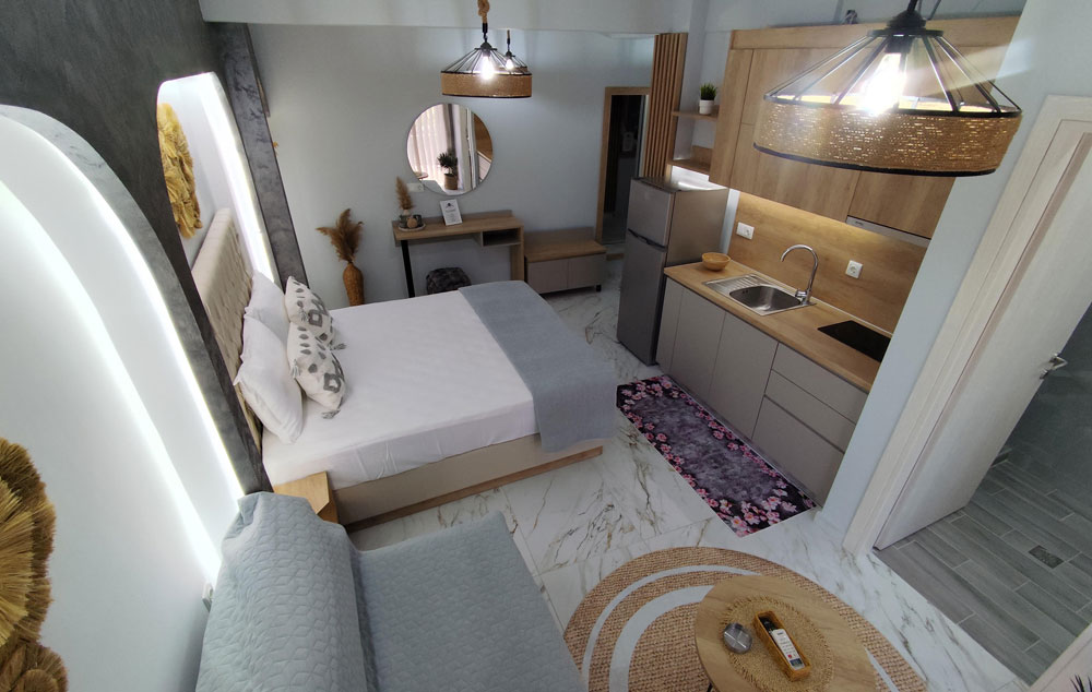 • Studio je smeštajna jedinica koja se sastoji od kupatila (tuš/WC) i jedne prostorije u kojoj se nalazi naznačeni broj ležaja i kuhinjski deo koji je opremljen rešoom, frižiderom i osnovnim posuđem