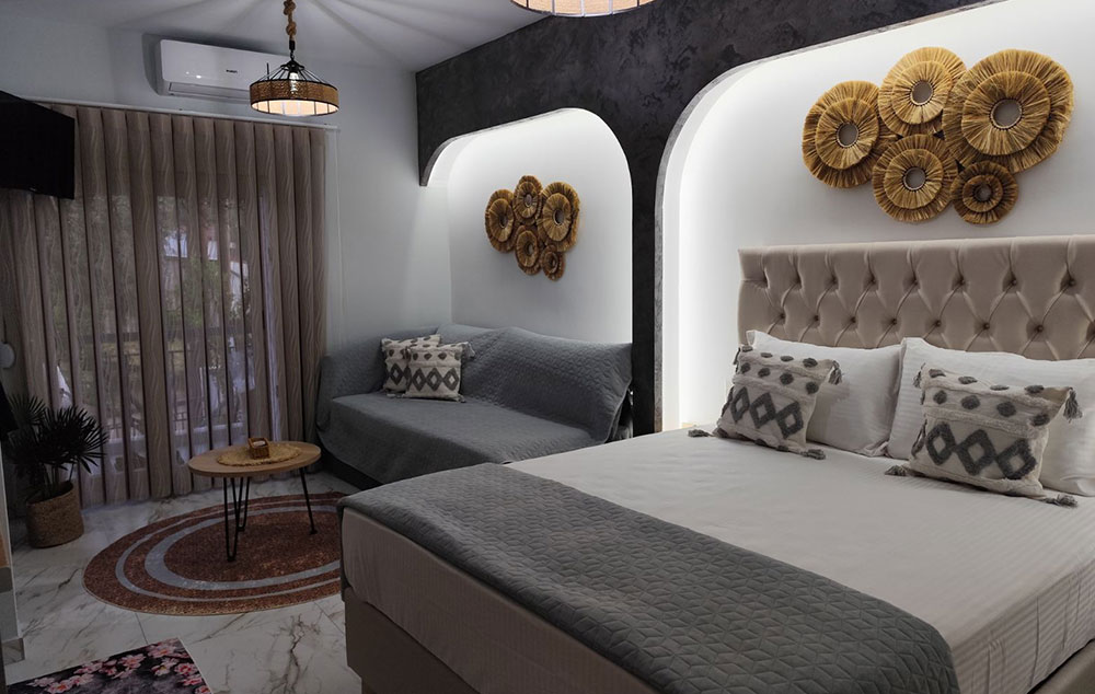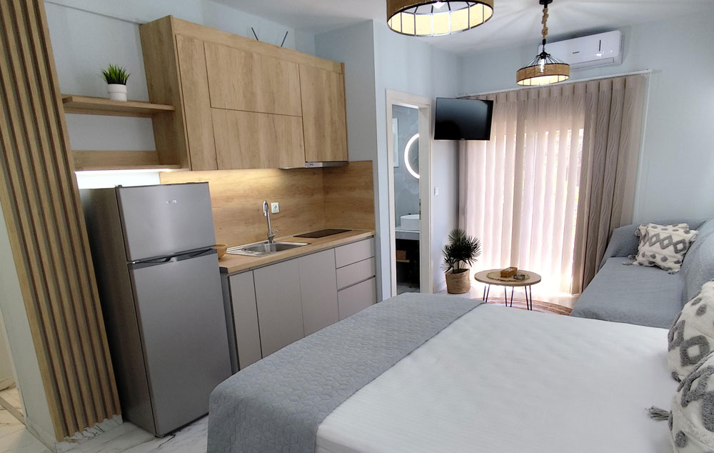Opis: Vila Tasos 2 je izgrađena 2015. godine. U našoj ponudi su dvokrevetni, trokrevetni i četvorokrevetni studiji. Svaki studio je prostran i poseduje opremljen kuhinjski deo, kupatilo, terasu, TV i klima uređaj (uz doplatu na licu mesta od 7€ dnevno).