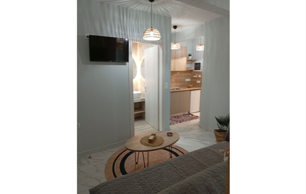 Opis: Poseduje dvokrevetne, trokrevetne i četvorokrevetne studije koji se nalaze na prom spratu. Svaki studio ima opremljen kuhinski deo, kupatilo/wc, terasu, WiFi internet i klima uredjaj ( uključen u cenu aranžmana ). U blizini vile se nalaze brojni supermarketi, pekare, restorani i ostali sadržaji.