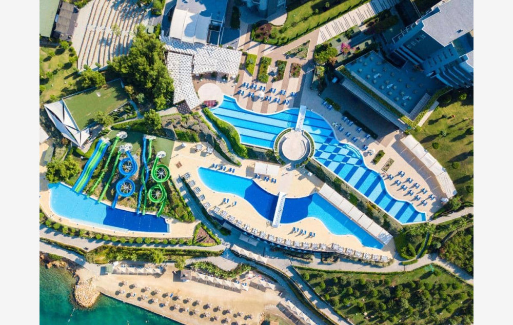 Položaj: ovaj luksuzni hotel se prostire na 82000m² i udaljen je na oko 3km od mesta Guvercinlik, oko 26km od centra Bodruma. Od aerodroma u Bodrumu udaljen je oko 15km.