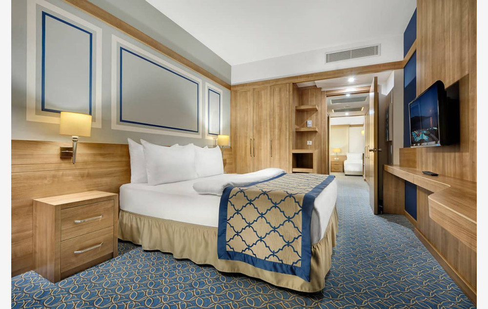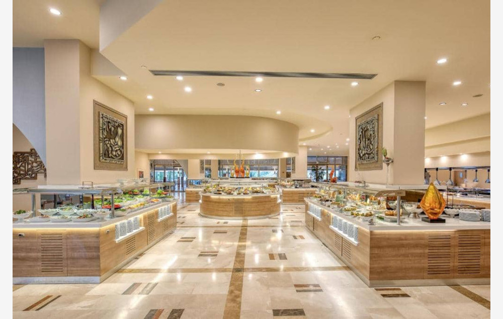 Sadržaj: glavni restoran, 5 a la cart restorana, poslastičarnica, 12 barova, dva otvorena bazena, bazen za decu, Aqua park sa 10 tobogana, zatvoren bazen sa odvojenom delom za decu, mini klub i mini disco, igralište za decu, animacija za decu, SPA centar sa 2 saune, hamamom, masažama i tretmanima lica i tela, frizerski salon, doktor, fitness centar, servis za pranje i peglanje veša, TV sala, bioskop, menjačnica, market, internet zona, stoni tenis, 2 teniska terena, pikado, bilijar, odbojka na plaži, mogućnost bavljenja sportovima na vodi, dnevna i večernja animacija, wifi.