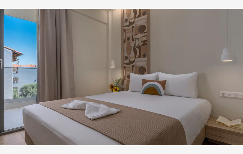 Sandy Suite Sea View - Apartman Sandy s pogledom na more, smešten na 2. spratu i površine 34 m², može primiti do 4 odrasle osobe u dva bračna kreveta.