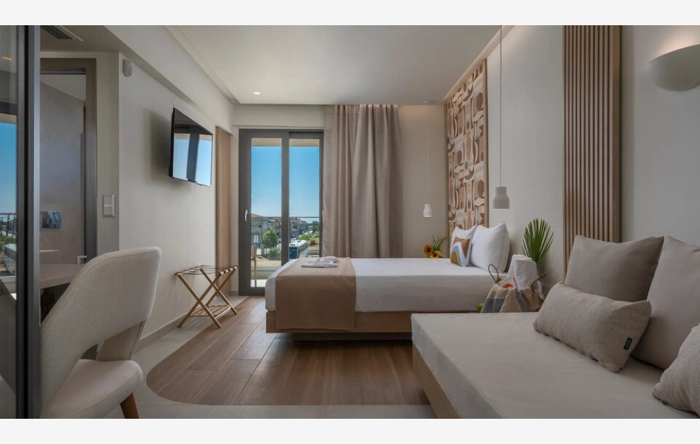 Comfort Room Sea View - Comfort soba s pogledom na more, smeštena na 2. spratu i površine 23 m², može primiti do 3 odrasle osobe u jednom bračnom krevetu i jednoj sofi na razvlačenje za jednu osobu.