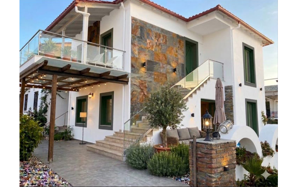 Opis: Poseduje dvokrevetna, trokrevetna i četvorokrevetna studija, smeštena na prvom ili drugom spratu. Svaka smeštajna jedinica ima opremljen kuhinjski deo, kupatilo/wc, fen, TV, WiFi internet i klima uređaj (korišćenje uključeno u cenu aranžmana). Svi studiji imaju terasu sa garniturom za sedenje. Vila poseduje lift, a gostima je na raspolaganju toalet za poslednji dan boravka. Ovo je objekat sa idealnom lokacijom, lepo opremljenim smeštajnim jedinicama u čijoj blizini se nalaze mnogobrojne tavern, marketi, poslastičarnice I preporuka je za sve kategorije turista.