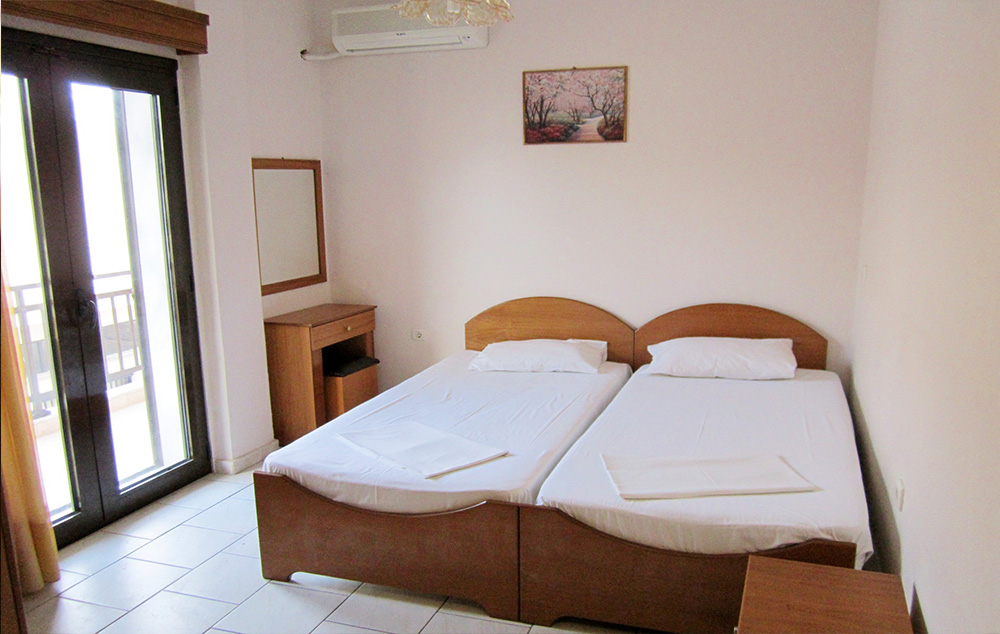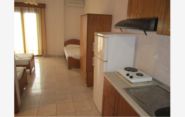 Opis: U našoj ponudi su studija i dupleks apartmani, koji se nalaze na prvom spratu. Sve smeštajne jedinice su renovirane. Svaki studio/dupleks ima opremljenu kuhinju, kupatilo/wc, terasu, TV, WiFi internet, klima uređaj (uz doplatu na licu mesta, od 7€ dnevno).