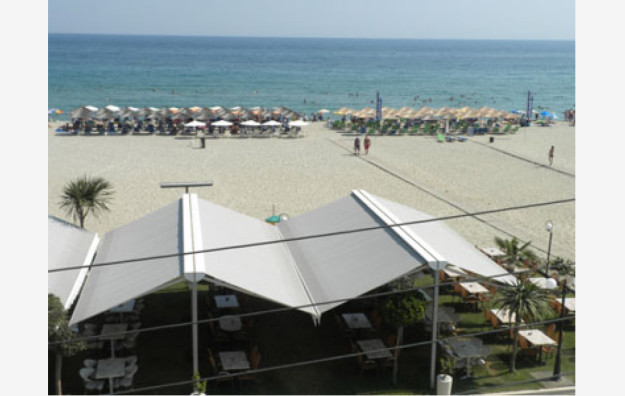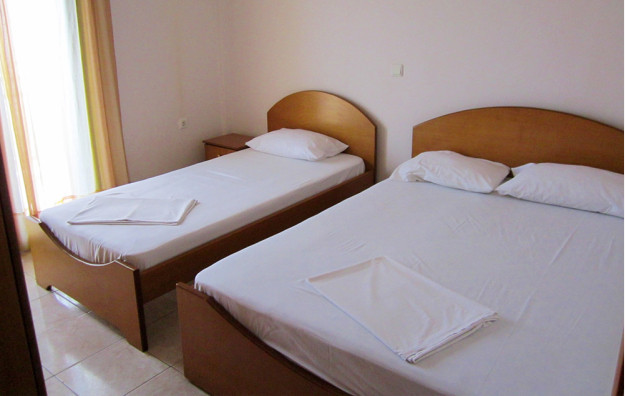 Opis: Sastoji se od dvokrevetnih, trokrevetnih, četvorokrevetnih studija, kao i četvorokrevetnih i petokrevetnih apartmana koji se nalaze u prizemlju, na prvom i drugom spratu. Sve smeštajne jedinice poseduju opremljen kuhinjski deo, kupatilo/wc, terasu, TV, WiFi internet i klima uredjaj ( uz doplatu na licu mesta od 5€ po danu, za dva uredjaja 8€ po danu ). Apartman se sastoji od spavaće sobe u kojoj se nalaze dva singl ležaja, a u velikoj trpezariji tri singl ležaja. Apartmani u visokom prizemlju vile se od ostalih razlikuju po visini plafona (220cm), poseduju jedan TV i klimu uredjaj u jednoj prostoriji. U neposrednoj blizini vile se nalazi supermarket, pekara, mesara, kao i glavno šetalište gde se nalazi brojni restorani i kafići. Preporuka za sve vrste gostiju, kako porodice sa malom decom, tako i za parove ili društva koji vole da uživaju u prelepoj plaži i da su im sadržaji na dohvat ruke.